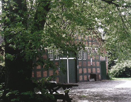 Das Anwesen ist geprägt durch das historische Gebäude-Ensemble, bestehend aus der Diele mit Fachwerkgiebel, der Scheune mit imposanter Holzkonstruktion und der über 200 Jahre alten Linde. Umgeben ist der Hof von Eichenbäumen, einer Obstbaumweide mit alten Apfelsorten und der idyllischen Gartenanlage.